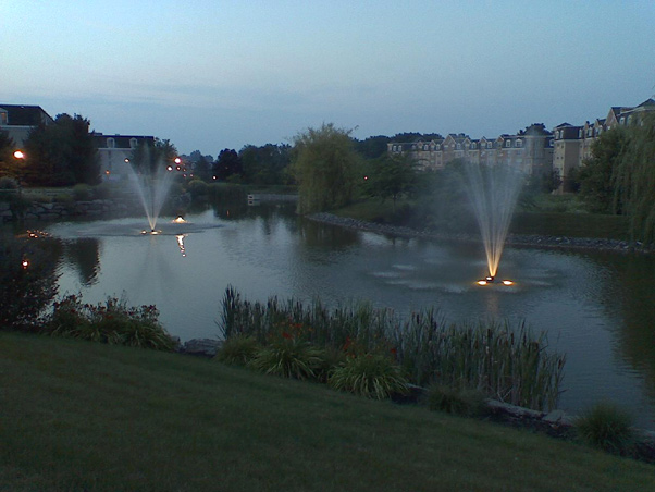The evening lights are coming on.