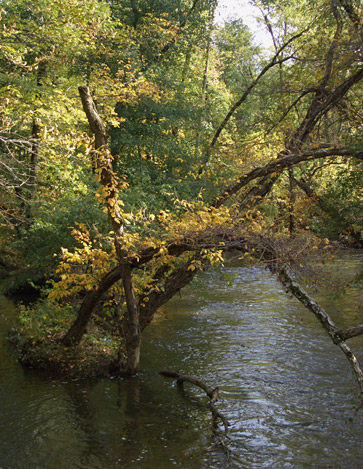 This curved branch hangs over a small tributary of the Millstone River near the old red mill. The same scene is often photographed during flooding, and there are also prettier seasons such as this autumnal moment. Over the several years that I have been frequenting the canal park, I have seen these boughs bend lower and lower, and one wonders how much longer they will support their own weight.