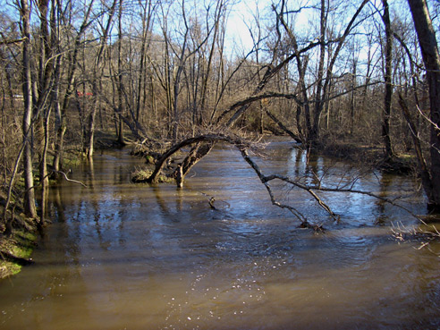 The breached bank above the mill dam continues to open wider, each storm, and reduces the dramatic flow that used to cascade over the dam itself. A new wetland area has now been created around the dam.